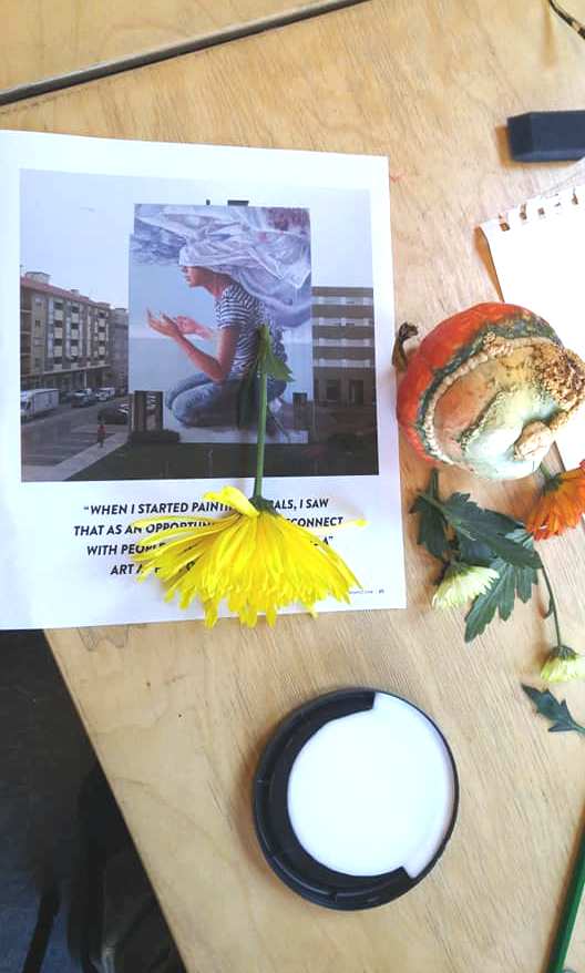 the juxtaposition of images and objects used for contour drawing and collage