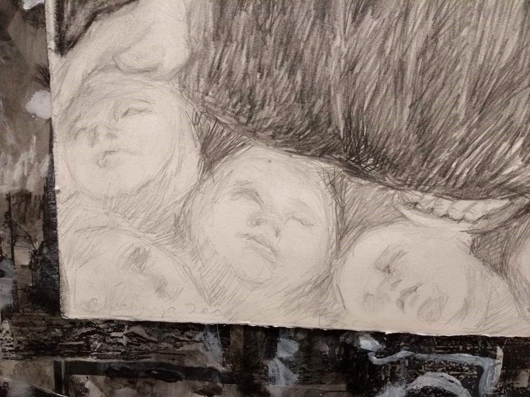 War’s impact on children and their caregivers transcends myths of “good guys and bad guys,” or of enemies and evil. It is a painful story, yet told here with tenderness through works on paper in an intimate, grotto-like setting. Such spaces have long been associated with veneration of the Madonna and Child, evoking the sacredness of life so often denied in war.