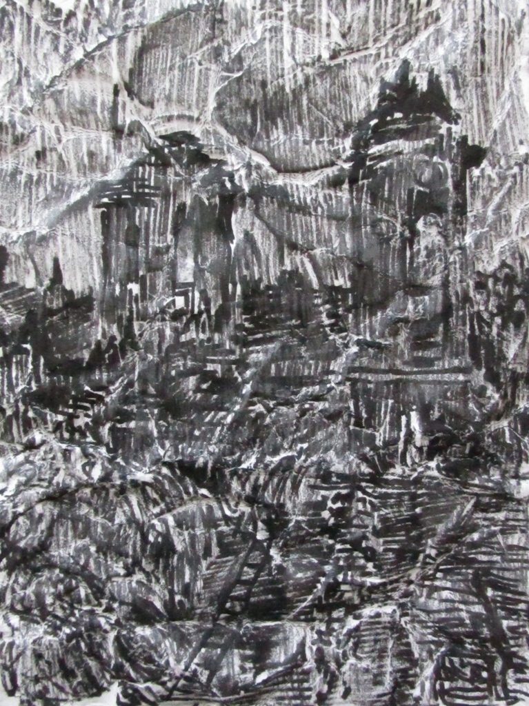 a hilly landscape of bricks 5″x7″ felt pen on crushed stonehenge