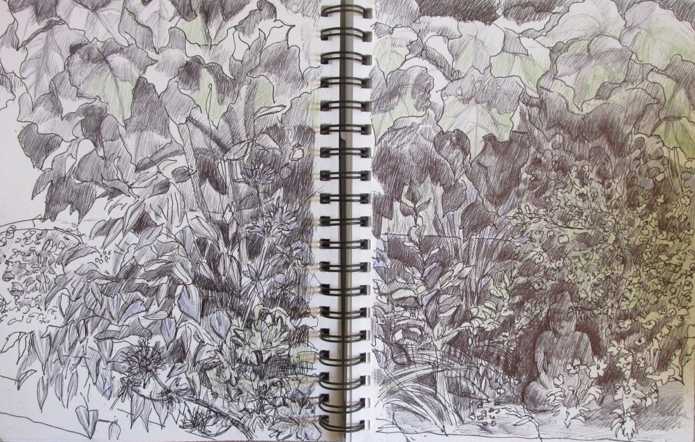 Cornelia van Voorst, Jollity Farm Garden, Thetis Island, sketch book pages, 2014.