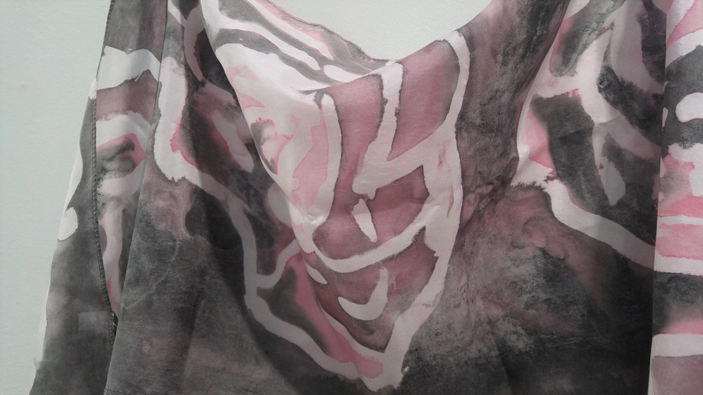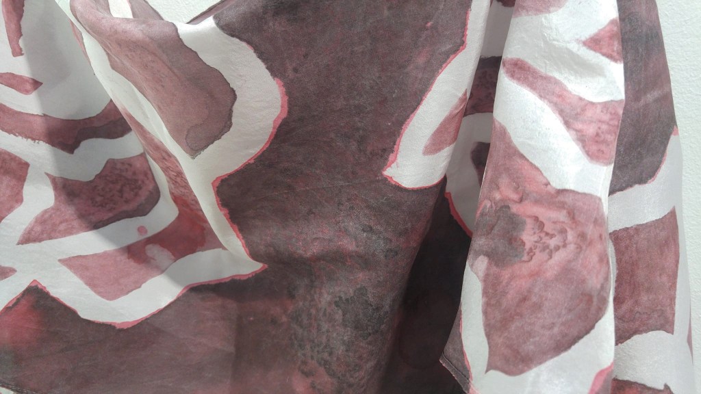 I chose to make a series of hand painted silk scarves that feature studies of neighbourhood roses in expressive lines and dark tones to represent our difficult times.