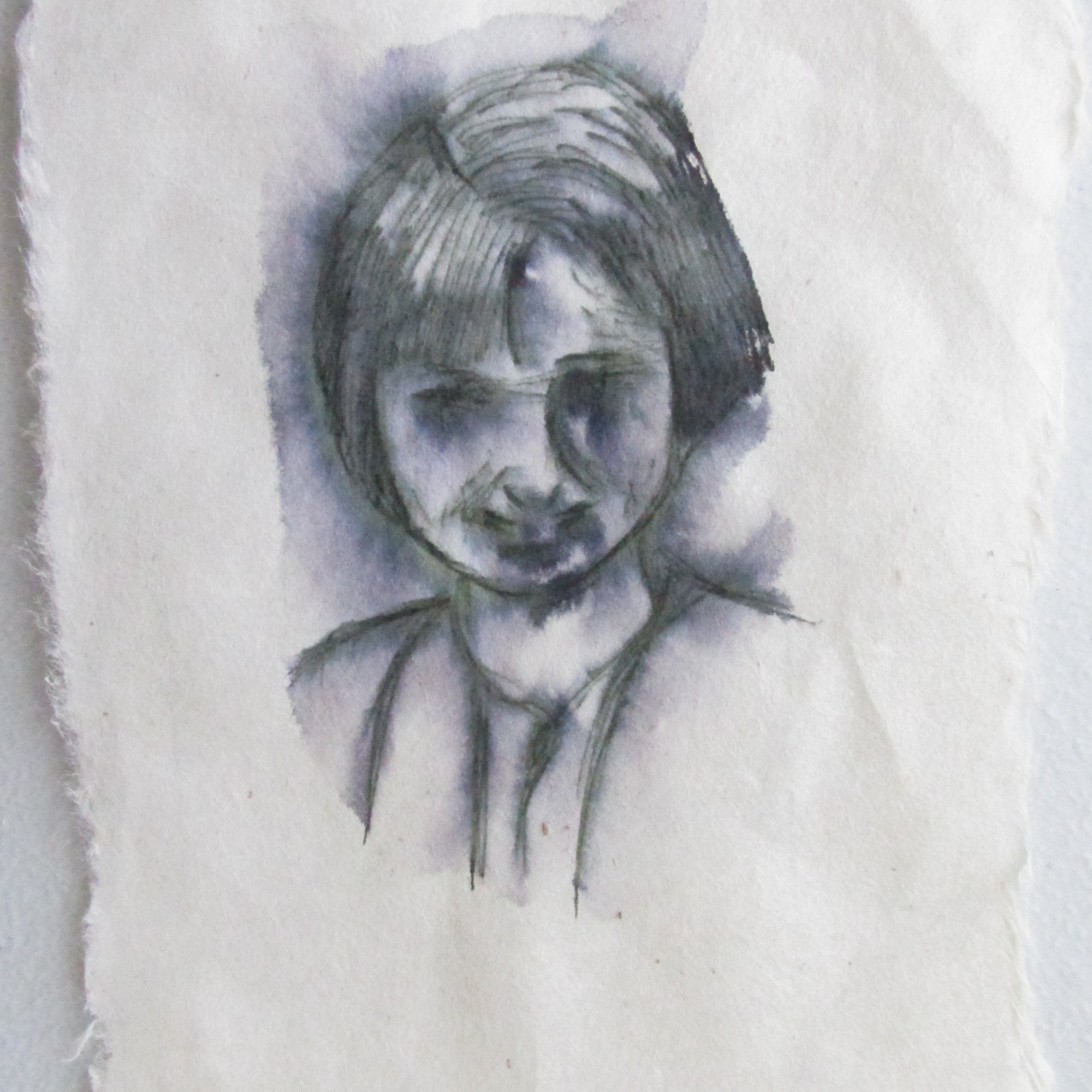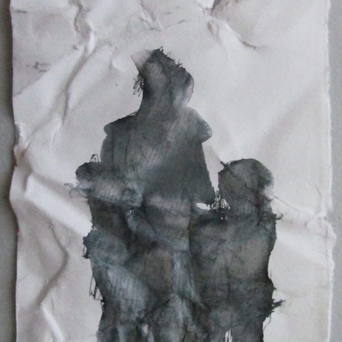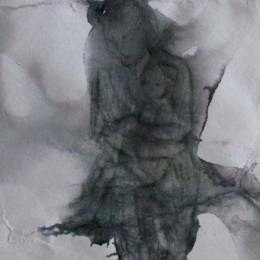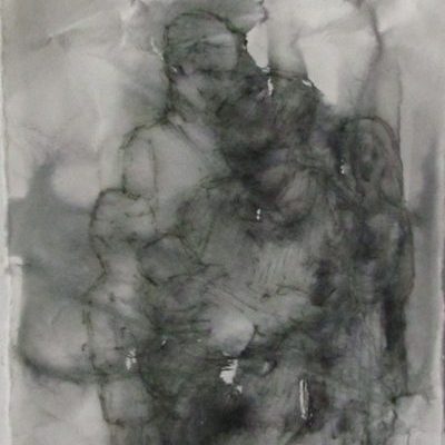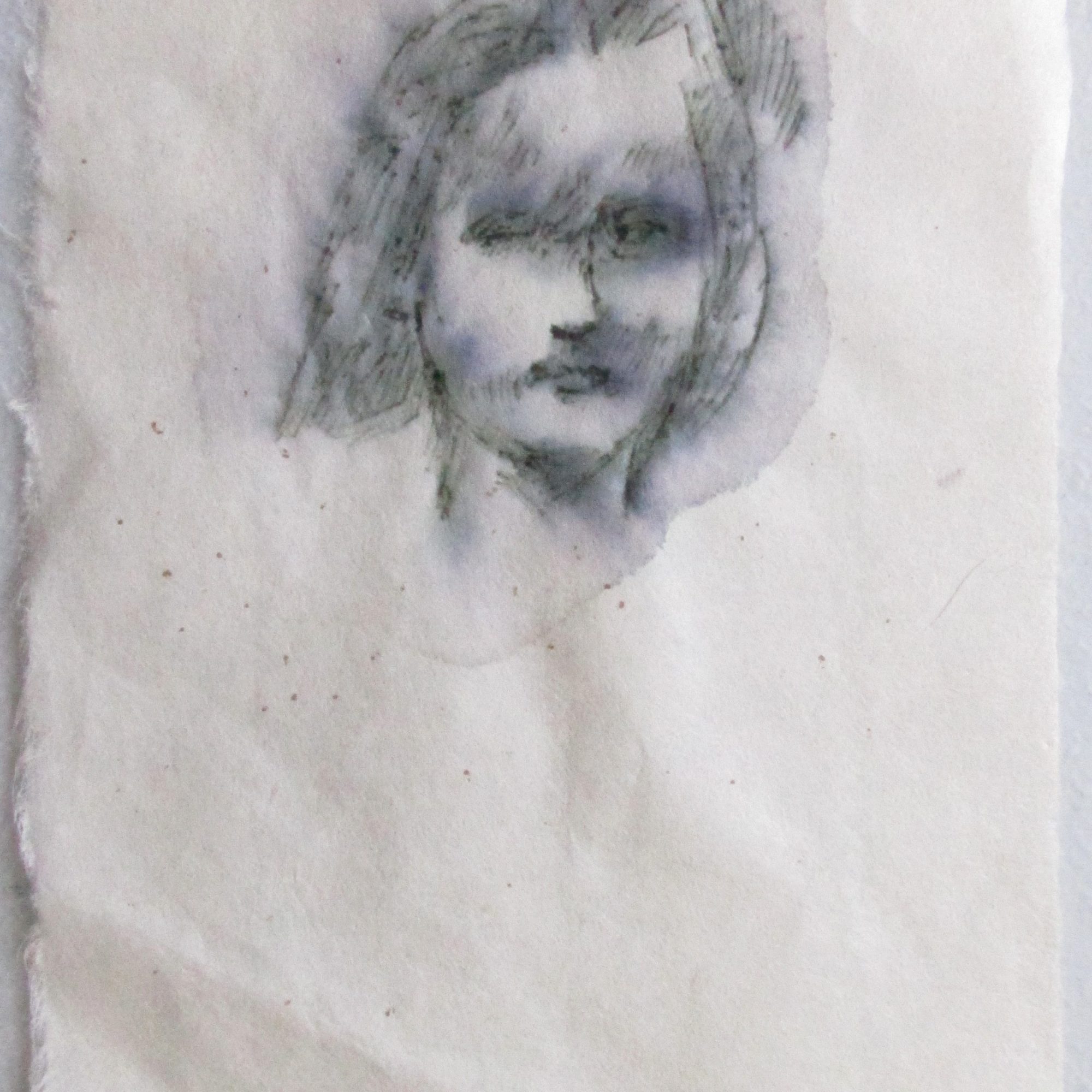 These small figurative and portrait works are part of an installation The Grotto that was included in The Other Side of War. These ink and charcoal drawings hover between a literal and metaphorical depiction of the human form, imitating the difficulty of describing traumatic memory. Drawings are the size of vintage family photos, evoking those loved, scratched on fragments of paper, wrinkled perhaps from being stuffed in a pocket or enclosed in a hand. Realism is fleeting; feeling remains, even as detail fades; traces of tenderness linger as if not to lose sight of goodness in the face of catastrophe.