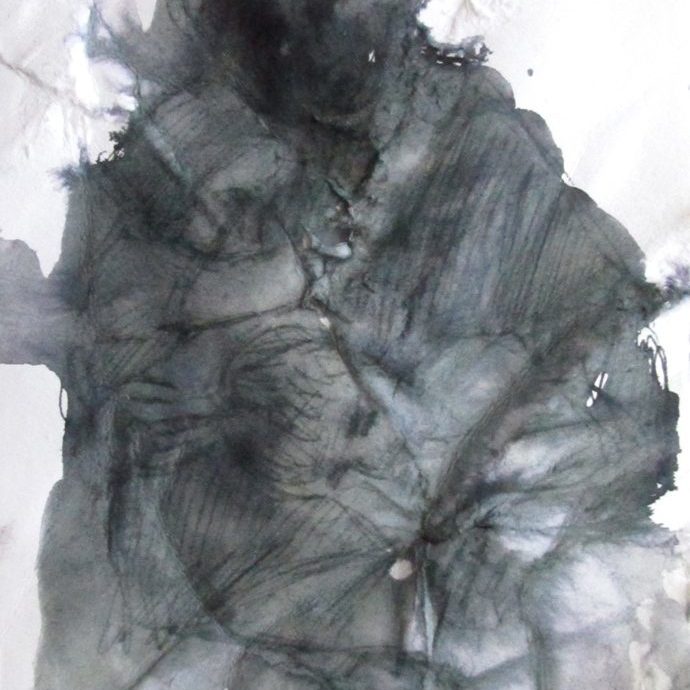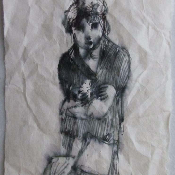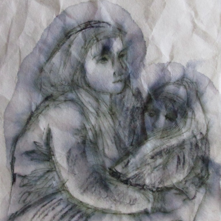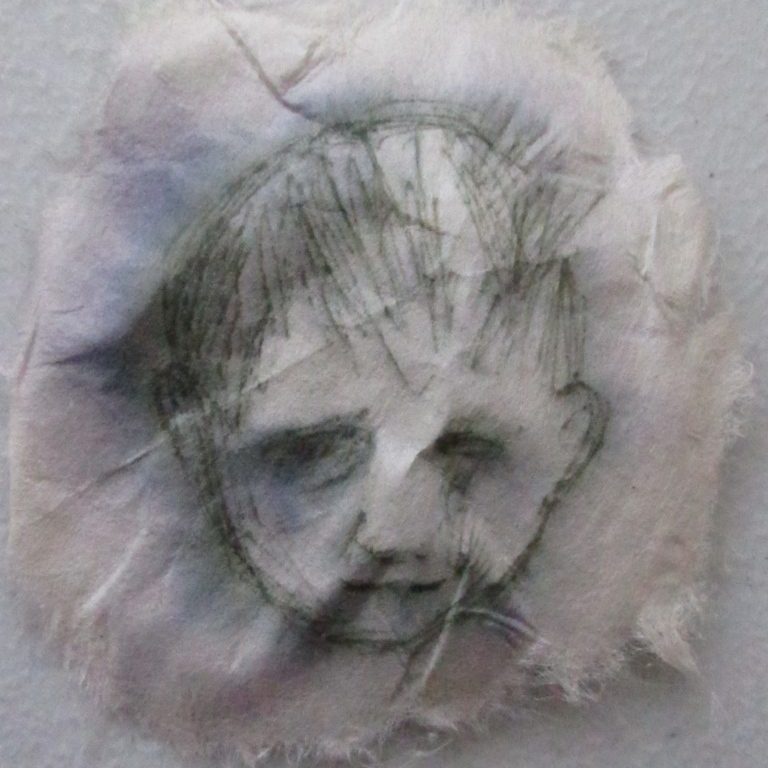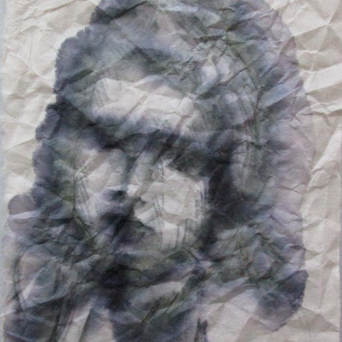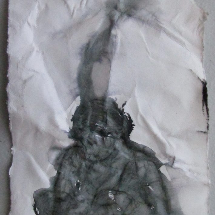 These small figurative and portrait works are part of an installation The Grotto that was included in The Other Side of War. These ink and charcoal drawings hover between a literal and metaphorical depiction of the human form, imitating the difficulty of describing traumatic memory. Drawings are the size of vintage family photos, evoking those loved, scratched on fragments of paper, wrinkled perhaps from being stuffed in a pocket or enclosed in a hand. Realism is fleeting; feeling remains, even as detail fades; traces of tenderness linger as if not to lose sight of goodness in the face of catastrophe.
