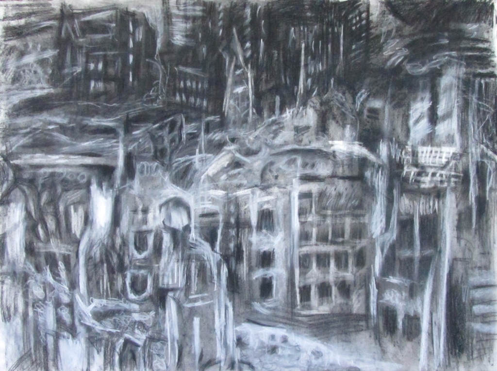 “Iphigenia in the evening” 22″x 30″ conte, charcoal, eraser